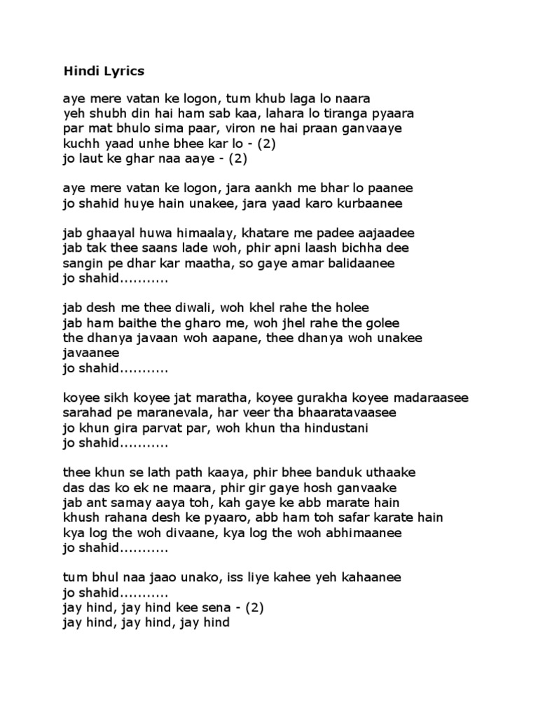 E Mere Watan Ke Logo Lyrics In Hindi E Mere Watan Ke Logo Lyrics In Hindi : Read or print original aye mere watan ke logo lyrics 2020 updated!