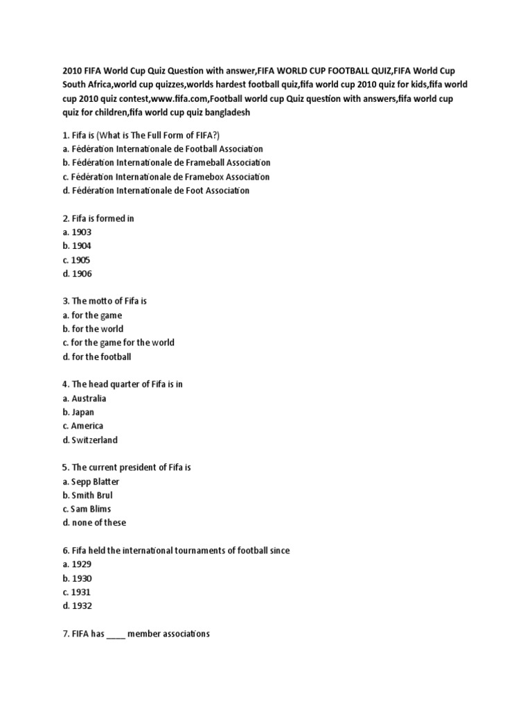 Fifa Quiz Questions And Answers