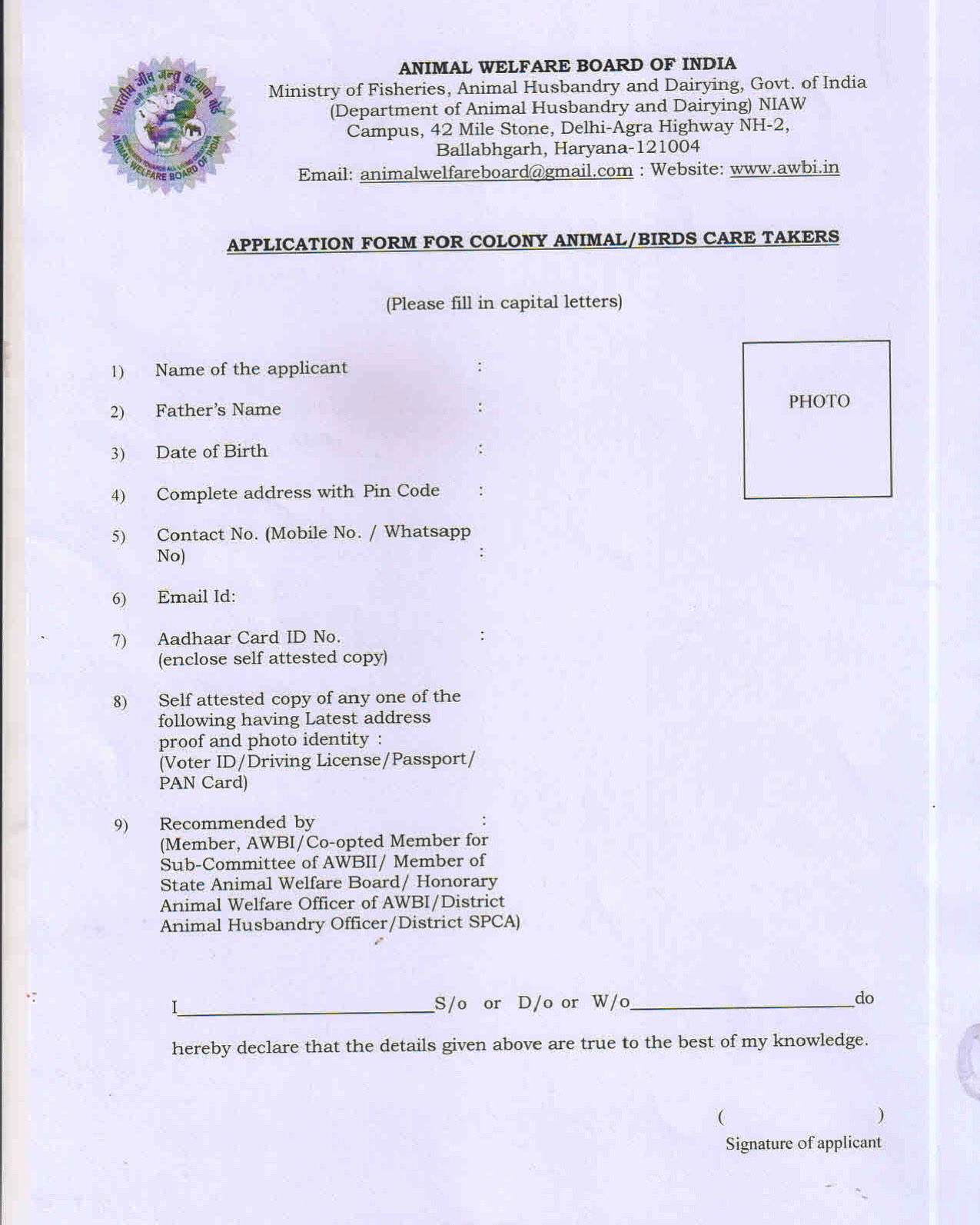 People For Animals Delhi : Student name, college and year of study.